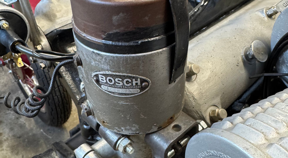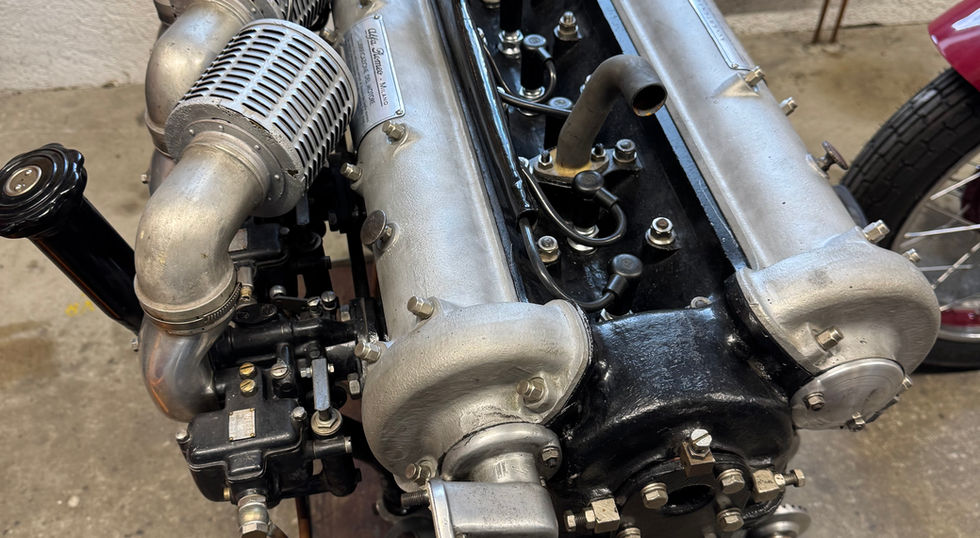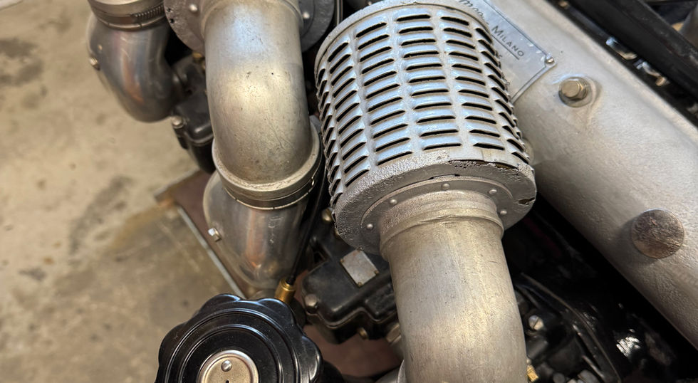 Engine fully overhauled by marque expert. Correct "interim" 6C 2500 engine with the large water covers on the sides, three Weber 36 DO setup, correct distributor, period-correct racing manifold etc. Run in on test bench.